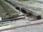 Once the tie was pried from it's encasement in the dirt and stone we moved it to the adjacent track and leveled out the dirt. Some tree roots were encountered and chopped off, probably from the tree that was removed. |