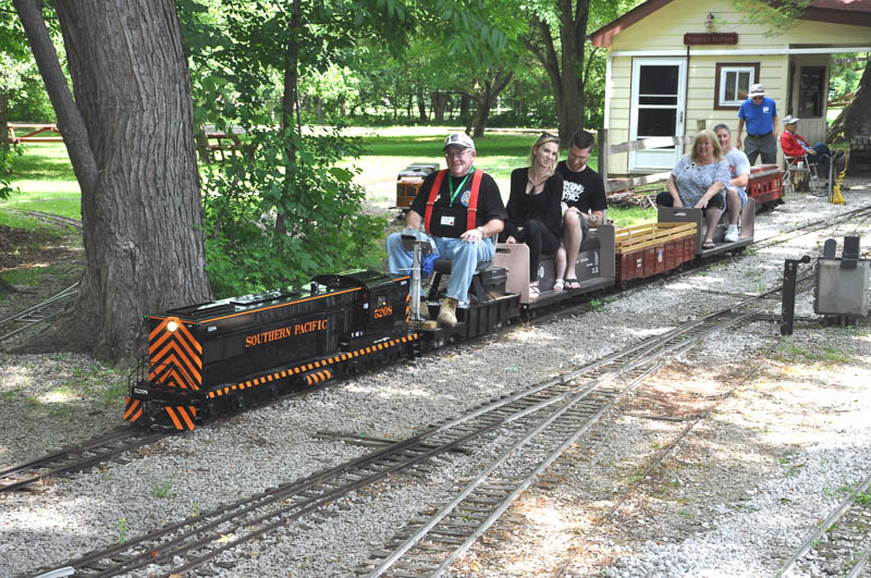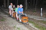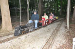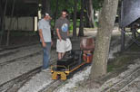 Ted Nyland departs from a siding at the end of our station with a family that is all smiles in anticipation for the ride. Greg Guy has just loaded Richard's train and Bill Besselman standing is taking our rider count today. |