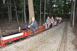 Ron departing the station with his passengers on his first trip around today. A smiling Richard Sales with his electric powered engine was next to leave the station with his load of passengers. |