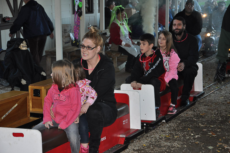 Virginia Weinberg dressed up as a witch and helped with offering assorted candies from a bucket to the kids at end of the ride. It was good to see Judson Elliott with his boxcab engine running tonight. |