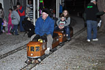 Paul Zorko just got the "All Aboard!" call and has started his next run. John Riba leaving the station on his next run is bundled up against the cold evening which is even cooler when you are on a moving train. |