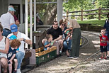 Ken, our club President, departs the station with the second trainload of riders. Judson arrived back at the station, discharged his passengers and took on another load of riders. |