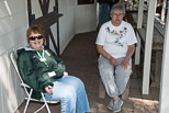 Dick Clark with his SW1500 diesel engine was the next to leave the station after taking on a load of passengers. Anna Zorko is our passenger counter for todays run and Bonnie Zaken is keeping her company. |