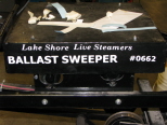 Ted Nyland is working on adding the vinyl lettering that he made for the ballast sweeper on the sides of the housing. And this is what he has so far. I asked him how he got the number #0662 but found out that it was published in our newsletter, I must've missed it. |