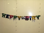 Frank Foti still working on this putting the side rods back on East Wind because we have our March train show coming up in a week. Today we also celebrate Frank Foti's birthday and as such Edith went to a dollar store and bought this banner. I guess if you would've paid full price they could of spelled out the word birthday, but we did get a good laugh out of it. |