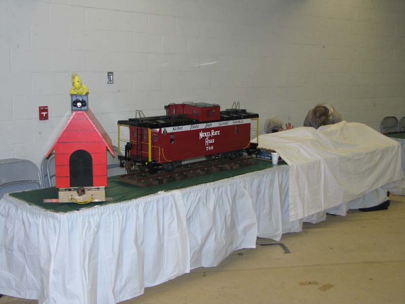 John Deptowicz brought Snoopy and Paul Emch his NKP caboose for table display. George Metts brought some of his operating table top steam engines and plants. |