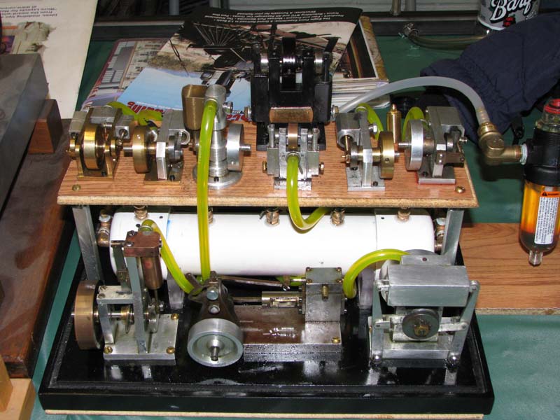 Steven brought in two displays for his working models which were running on air. A close-up of one engine chugging along on air. |