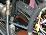 View showing the suction line connected and the distribution lines through the new splice plate. All the hoses are installed and the only thing left to do is mount the air pump for the horns, which is laying on the bed plate. |