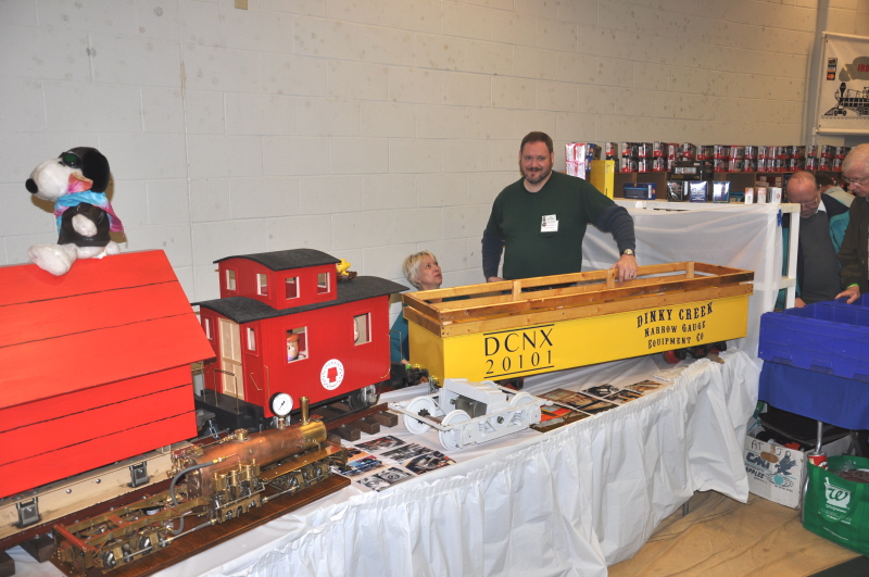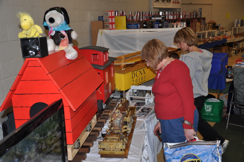 The Snoopy engine on display built by John Deptowicz with his new Snoopy caboose he built last year. Bonnie Zaken carrying Steve's machine shop in it's glass display case. |