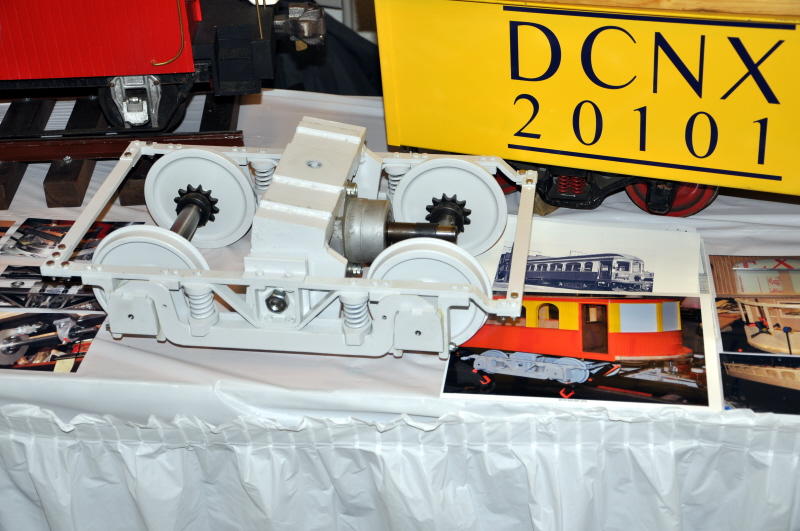 John and Judy behind the Dinky Creek gondola that Paul Emch recently acquired from Dick Philpott. Bill Deptowicz brought in the scratch-built truck of a set he's making for his Lake Shore Electric heavyweight Interurban that he is building. |