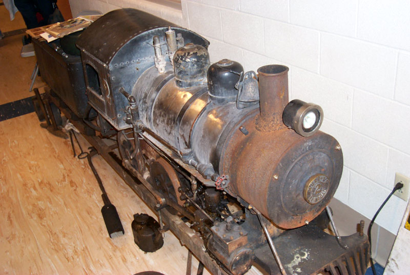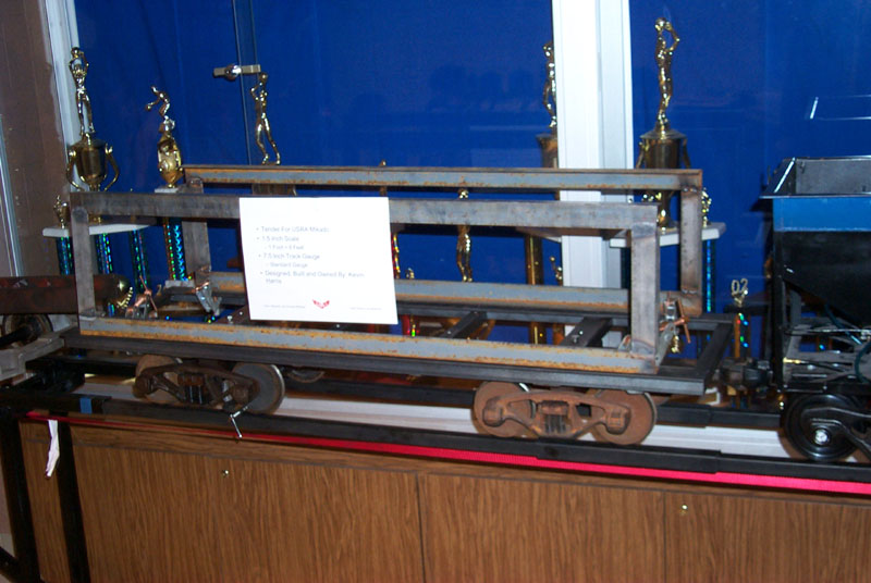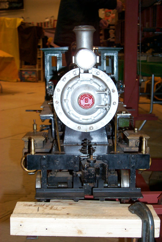Roy Harris had his "American" chassis and boiler on display. From the the way the tires sit on the rails it looks like it was gauged for 7 1/4" rail. |