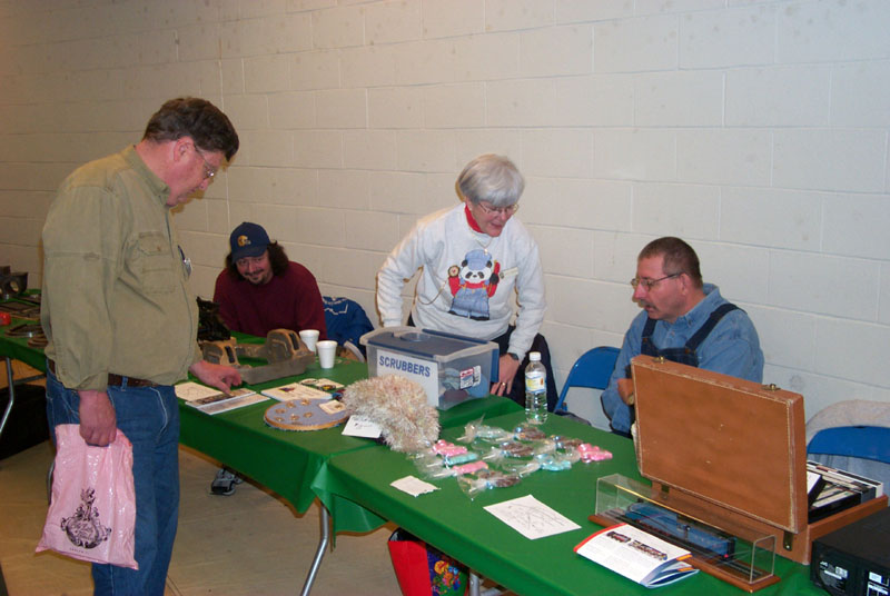 Jon's cylinder casting for his Northern along with milled side rods and parts on display. Frank Foti, Kitty Schriver, Marcel Uhrich and Rex Schriver share a moment for the camera. |