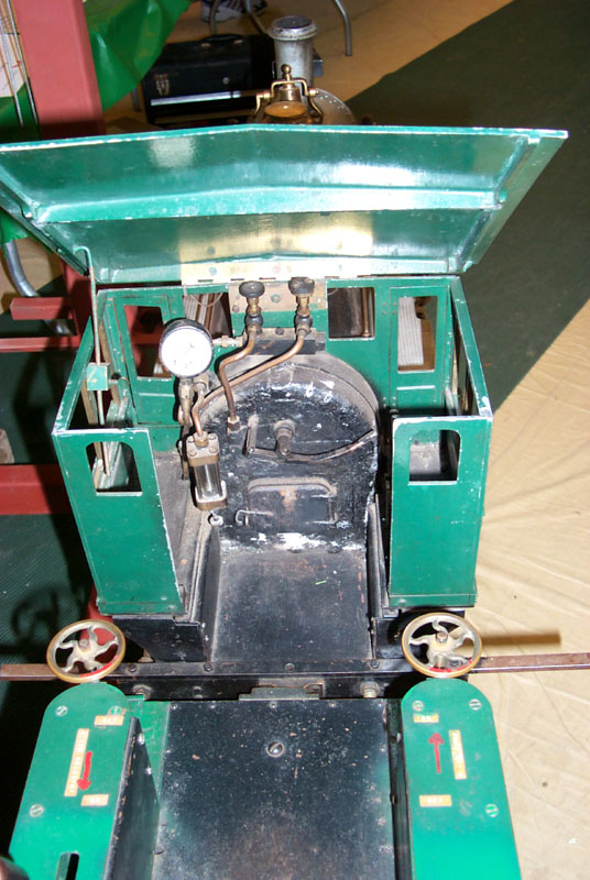 Howard Murphy brought his Ottaway engine for display which is for 15" gauge track. A view from the back of the cab at some of the valves and piping. |