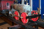Head on picture of George Davidsons' engine on the lift and a look in the cab at the backhead and firebox door. |