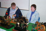 Tim and his wife behind his scratch-built Northern. Mike Uhrich and Robbie Haines, in a blink of an eye, behind the tabletop steam engine display. |