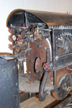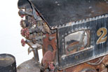Closeup of the cab and backhead of the Ottaway. Profile of the boiler and chassis of the engine. |