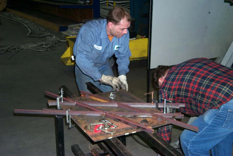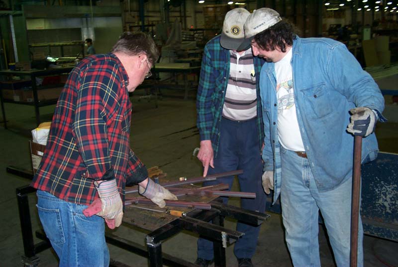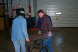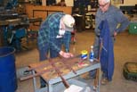 Chris Ashley at H/M handled the torch again to heat the guard rails for bending as Frank waited. Frank started bending the rail and Bill let him know when it was enough of a angle. |