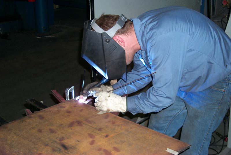 The welding process without the flash on the camera. It's like holding a pencil and feeding the welding rod into the arc with no splatter of the weld to clean up or to chip flux. |