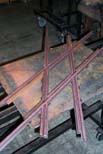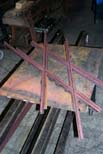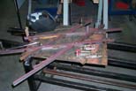 The rails are marked with a number so that they will get back to their original position after bending. George touches up the ends of the rail with a file to remove any burrs from machining. |