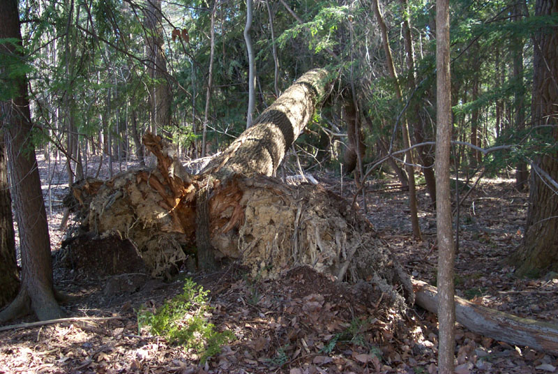 Mother Nature brought some high winds through the area last week and toppled this tree over at the end of our yard creating a natural arch. |
