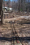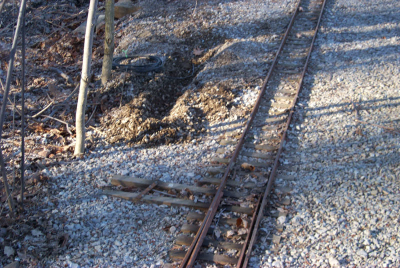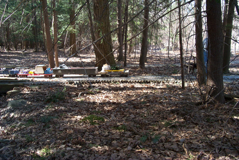 The new spur track connecting at Filmor for Branch Line that the work crew got in. At the upper end we have to put in a small bridge to cross a gully that drains the woods. |