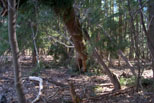 Anyone have an idea what kind of animal of the woods may have left the embedded footprints into the wood plank while crossing this ditch? Sure must have been big and heavy! |