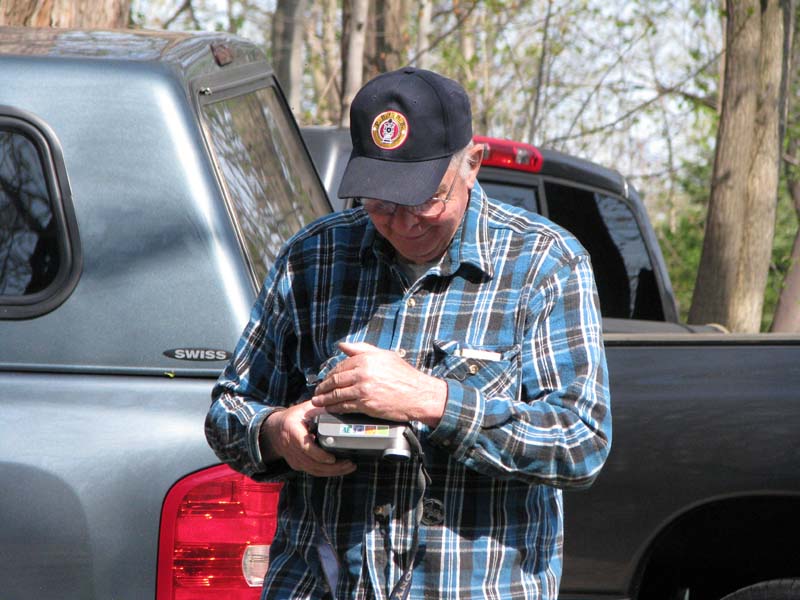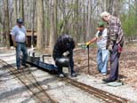 We moved things around to accommodate whole trains without breaking them down after a run. Jerry Bell is taking over the switch maintainance from Ron Trenhaile and is checking out the spring tension on the switch throw. |