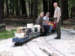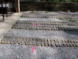 Work continues and those buckets of ballast get heavy after a while of lifting a few and dumping them. Of coure if you dump the buckets you have to return to our ballast pile of stone and refill the buckets as John is waiting for the train to arrive. |