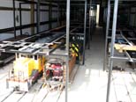 Joe looking over the pink sprayed area that shows the area our new lift will occupy to raise cars to the five rows and three levels in the Stanek car barn. The guide rail position that the carriage will ride on at this end. |