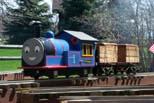 The Galloping Goose sitting on a siding by the station. Brent Lane leaving the station with the club's GP38 and Paul Emchs' mother Donna with Paul in the background. |