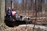 Caleigh and Rex stopped the train on our 3+% grade due to a sharp noise they heard and George checks the rear of their train. Ted and Marie Nyland stop to talk to Edith at Mackeys Run. |