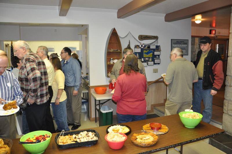 It's election night and the food committee plys us with free dinner to get us to show up and vote. As you can see, their ploy works! We had a good attendance at the Park's Lake Front Lodge. |