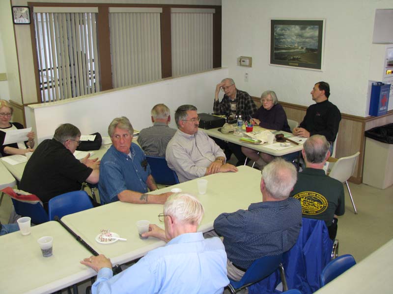 A view looking across the hall of the membership as the meeting is in session. Dick Clark records the meeting as our Secretary Maggie Dellmore and our President Frank Foti run the meeting tonight. |