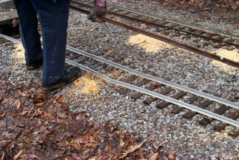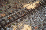 Ron Trenhaile got the switch actuator installed on the turnout at Short. The damage to the rail from one of the toppled trees to the mainline at High Creek. |