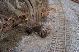 The members and riders will notice the new green signs that Ray Delmore routed out and erected at the named places. The snow toppled this tree next to the track behind the station. |