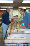 A close up of the air operated press owned by Dave Foster. Dick Clark and Edith Hacker are getting a load of ties so we can set things up in assembly line fashion. |
