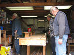 In the switch building shed, Ken Brooks looks for a part as Ted Nyland and Wally Pausch place ties on the switch building jig. We procured some beams to replace the ones on the bridge for the Branch Line that were rotting out. |