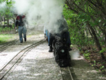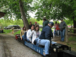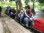 Paul about to unload passengers in front of the station after running Don Speidels train. The passengers kept trickling in as Paul prepares for the next run, I guess high school graduations kept the ridership count low along with this weather. |