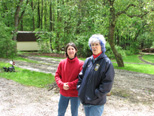Bill was trying to teach Ethan Deptowicz how to be a good conductor but he wasn't taking it seriously. Amy Deptowicz and Kitty Shriver at the loading area watching the trains load. |