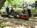 Bill is having a good conversation with Dick Philpott...look he's smiling! Marty with his boxcab waiting for Roger to finish talking with his passengers so he may start his next run. |