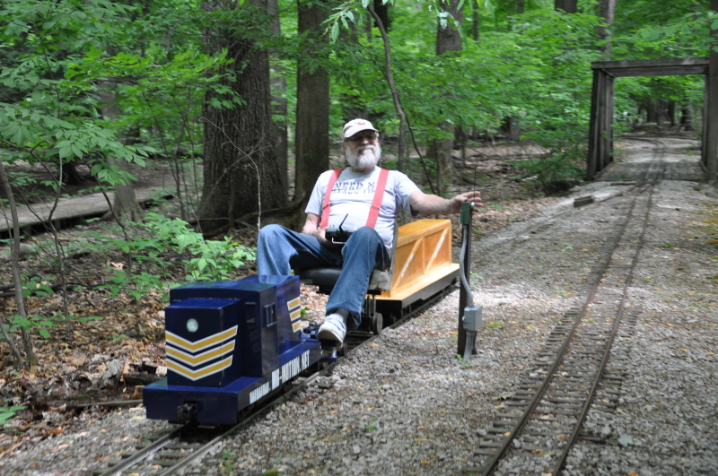 The snake decided there was nothing up there for dinner tonight and decided to move along heading for the woods. Thomas Ridler standing by the car lift in front of the Willis Car Barn as he waits for dad to assemble the train, they are the ones that noticed the snake. |