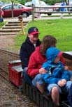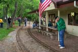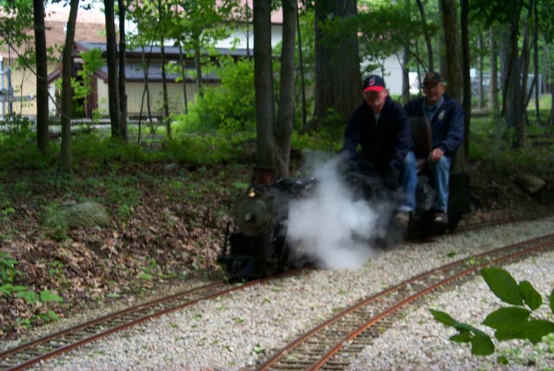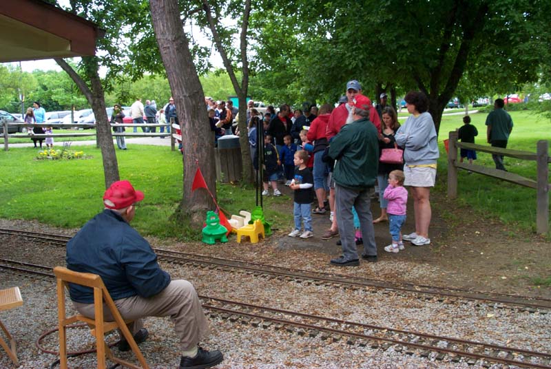 Brent leaving and heading out onto the main line. The line of passengers never got too long today probably because of the misting rain, but the riders took advantage of it and some rode three and four times. |