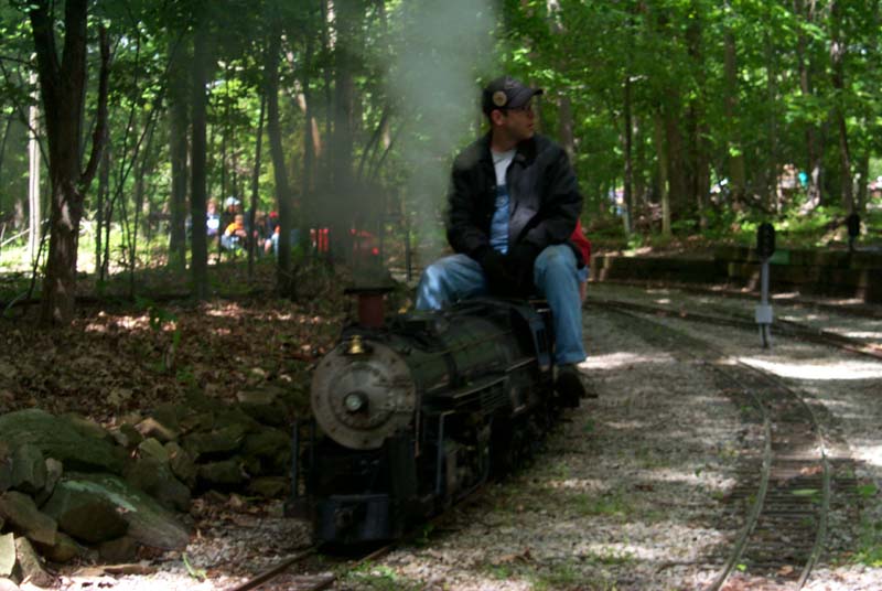 Frank with his train passing thru Horrendous and the sunshine is more predominant. After the public run Dick Mackey coached Rick on the running of the Hudson. |