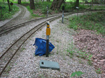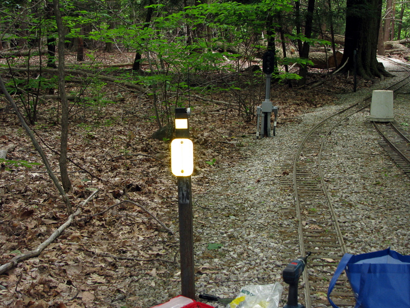 I headed down to the Truss Bridge to drill the signal posts for targets and found that Jerry Bell is putting a switch in at the end of the Justin Tyme Bridge. I am replacing the lower reflector with a larger one. |