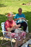 Trains lined up in front of the station prior to the beginning of the public run waiting to be loaded with passengers. Kitty Shriver and Katie Pappas with Kitty making pot scrubbers to sell and Katie crocheting a scarf. |