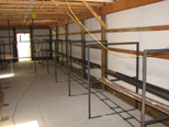Work has been continuing on the track for the storage shed. This is one of the center supports which will also hold two tracks at two levels above the floor. |