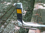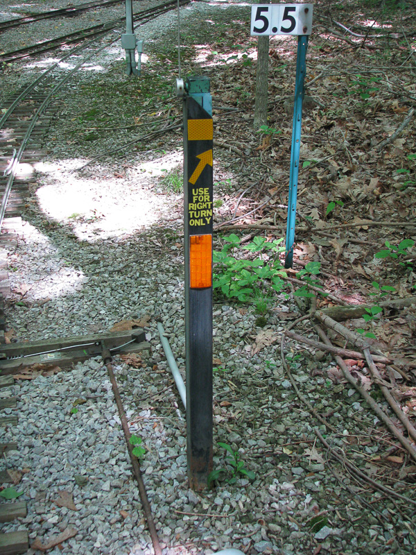 Steve Zaken taking a break from cleaning out the leaves from the culverts under the tracks across from the Willis Car Barn. This is the block signal post at Horrendous and here I'm scraping off the double-sided foam tape from the old reflector. |