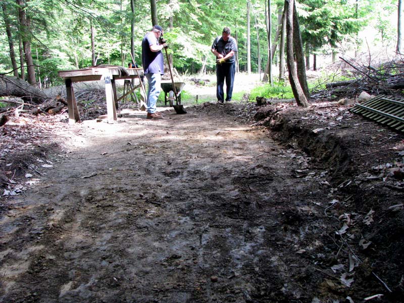 Ken Brooks and George Woodling were hard at work leveling the right-a-way before I got to this extra Friday work session. They had made alot of progress from the end of the track and we were heading towards the new car storage shed. |