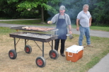 Robbie's brother David Haines did the honor of cooking the steaks and that's Jeff Stanek standing behind him. Robbie and Karen Haines were serving as the attendees passed by in the line. |