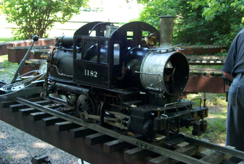 Karl Losely coasting into the station with the Hudson. Bob Beardslee in the process of putting his engine back in running condition after the boiler test. |